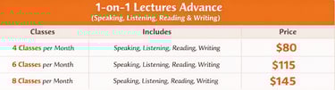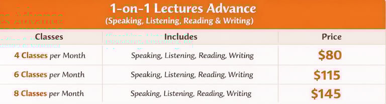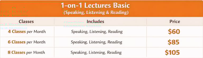 Personalized one-on- one classes and friendly teachers